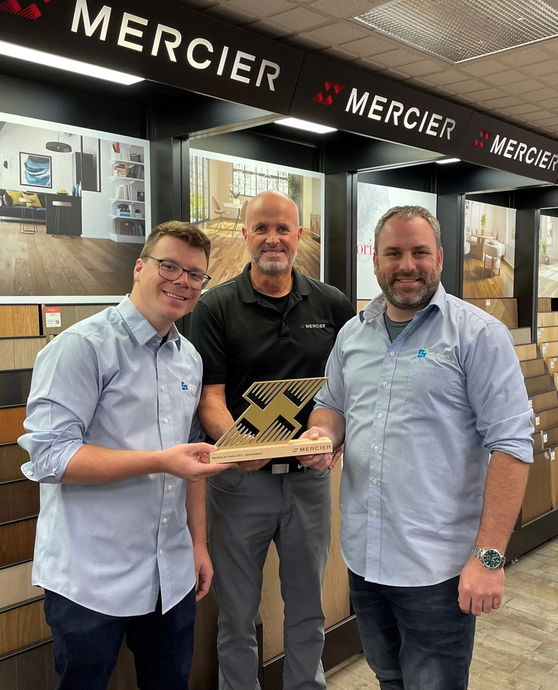Jean Adam, Territory Manager for the Eastern Quebec area, expresses his pride in seeing Les Géants du Couvre-Plancher receive honors: "The affiliation between Mercier Flooring and Les Géants has lasted for nearly 36 years and is getting stronger each year. The team at this store possesses exceptional expertise and experience that few can boast. The two co-owners took over the reins of this well-established business in January, tirelessly working to raise the bar and further develop their market while keeping Mercier in the spotlight. This award recognizes the remarkable results they have achieved despite the challenges and the tougher situation affecting the renovation and residential projects sector. This recognition is thoroughly deserved!"